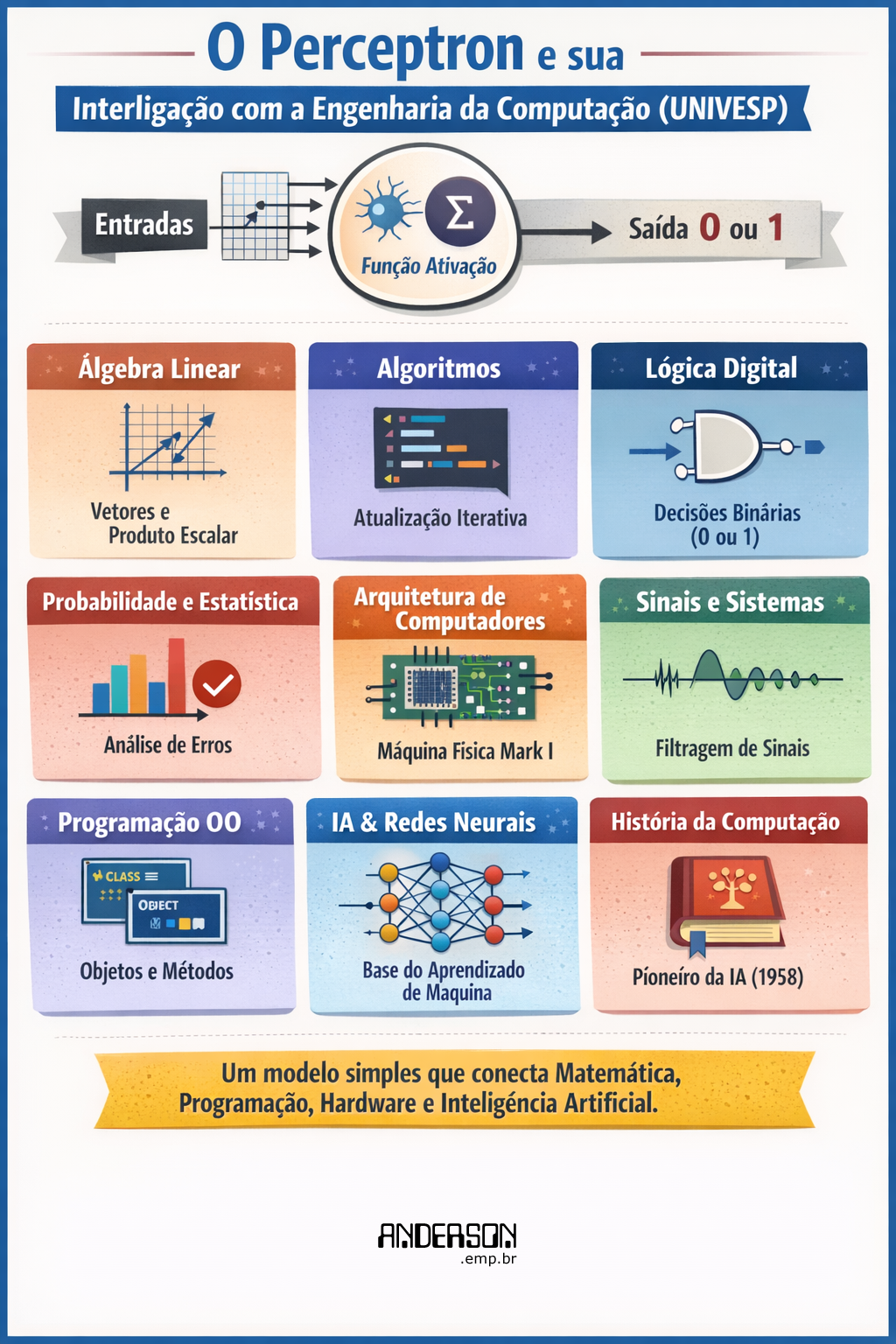 | Área / Disciplina | Conceitos do Curso | Relação com o Perceptron |
